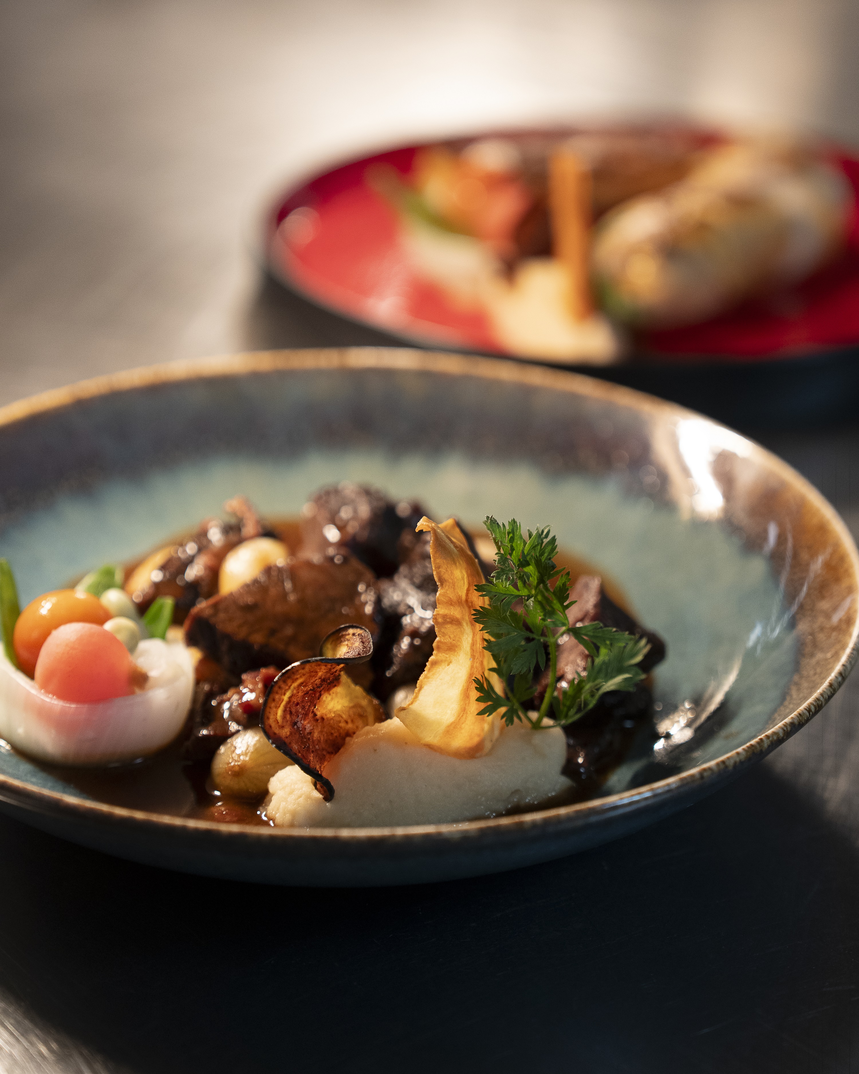 - Joue de bœuf basse température, Façon Bourguignon (lardons, oignons grelots)