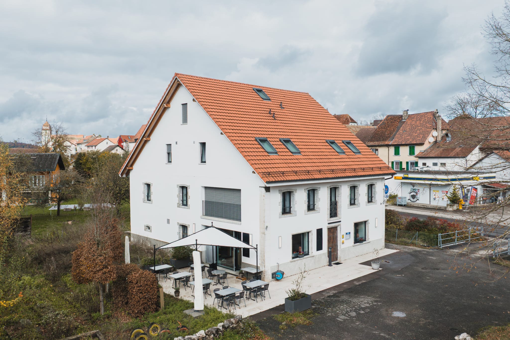 - Pour les beaux jours, terrasse à l’arrière du restaurant