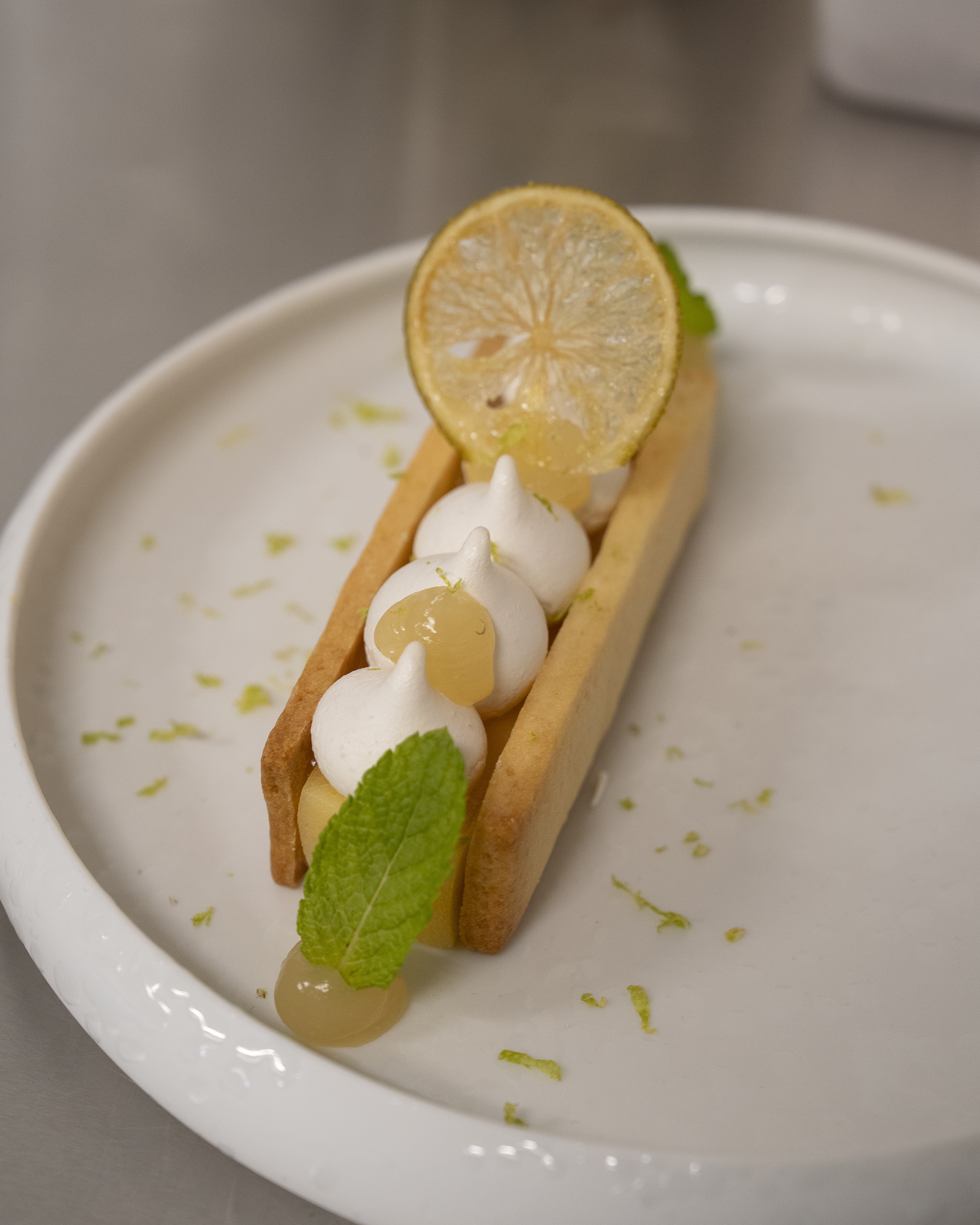 - Cylindre de saumon frais et fumé, Vinaigrette aux citrons confits, chips de citron vert