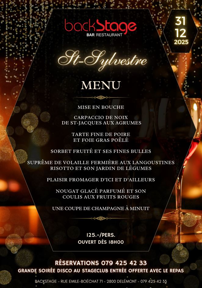 Réservez votre réveillon et vivez une Saint-Sylvestre mémorable: 079 425 42 33.